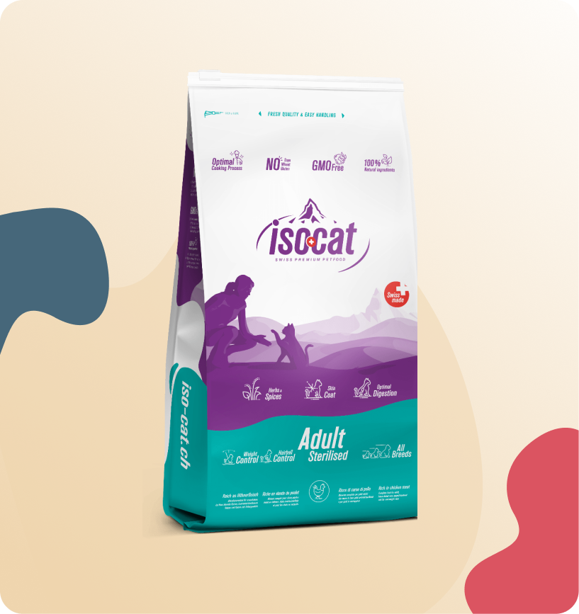 Iso-cat ADULT Sterilised ist ein ausgewogenes Diät-Alleinfuttermittel für ausgewachsene Katzen mit geringem Energiebedarf. Der niedrige Energiegehalt hilft, das Gewicht von kastrierten oder sterilisierten Katzen sowie von im Haus gehaltenen Katzen langfristig zu kontrollieren. Bei übergewichtigen Katzen kann eine reduzierte Futtermenge pro Tag zu einer Gewichtsabnahme führen. Ein ausreichender Proteingehalt unterstützt die optimale Erhaltung der Muskulatur bei gleichzeitiger Gewichtsreduktion.